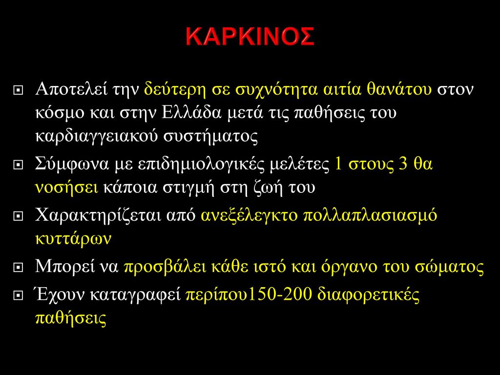 Ο καρκίνος αποτελεί τη δεύτερη αιτία θανάτου μετά τα καρδιαγγειακά νοσήματα.