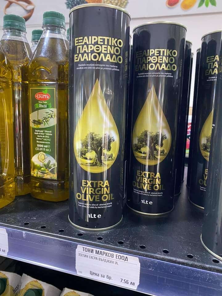 Ελληνικό Εξαιρετικό παρθένο ελαιόλαδο 1λιτρου στην Βουλγαρία 7.56Leva δηλαδή 4€… τιμή ίδιου λαδιού στην Ελλάδα 13€.. Αλλά ξέχασα. 41 τακατό.