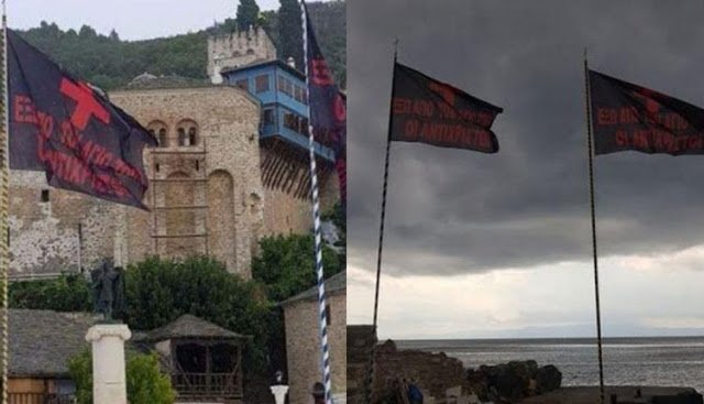 Σήκωσαν μαύρες σημαίες στο Άγιο Όρος για τον ανεπιθύμητο Τσίπρα που γράφουν: «Έξω οι Αντίχριστοι»