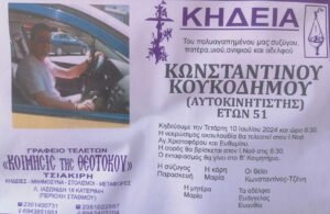 Ηράκλειο: Θρήνος για τον 38χρονο Παναγιώτη που έφυγε ξαφνικά από τη ζωή 11 Ιουλίου, 2024 Η κηδεία του 38χρονου θα γίνει αύριο Παρασκευή (12/7) στις 11.00 από τον Ιερό Ναό Αγίου Ιωάννη Κνωσσού και η ταφή θα γίνει στο νέο Κοιμητήριο Ηρακλείου. Σοκ προκάλεσε στο Αστικό ΚΤΕΛ Ηρακλείου ο ξαφνικός χαμός του 38χρονου, ιδιοκτήτη και … [Read more…]