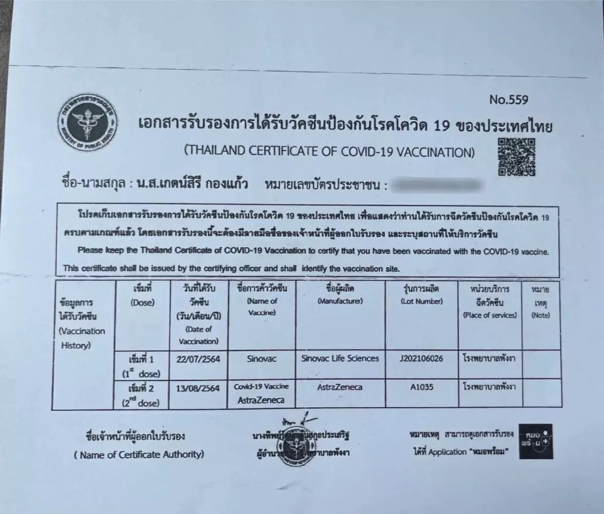 Η Κετσίρι πήγε να κάνει το δεύτερο εμβόλιο, το οποίο ήταν το εμβόλιο AstraZeneca COVID-19, στις 13 Αυγούστου στο κέντρο εμβολιασμού στο Phang Nga. Τρεις μέρες αργότερα υπέστη υψηλό πυρετό και σφίξιμο στο στήθος. Στις 18 Αυγούστου, πήγε στο νοσοκομείο Phang Nga για να αντιμετωπίσει τα συμπτώματά της. Οι γιατροί εκεί βρήκαν θρόμβωση σε όλο το αριστερό της πόδι. Στη συνέχεια μεταφέρθηκε εσπευσμένα στο νοσοκομείο Krabi όπου οι γιατροί δεν είχαν άλλη επιλογή παρά να ακρωτηριάσουν το αριστερό της πόδι πάνω από το γόνατο. Οι συγγενείς και οι φίλοι της πιστεύουν ότι μια παρενέργεια του εμβολίου AstraZeneca είναι η αιτία που η Κετσίρι χάνει το αριστερό της πόδι και ζητούν βοήθεια από την κυβέρνηση.