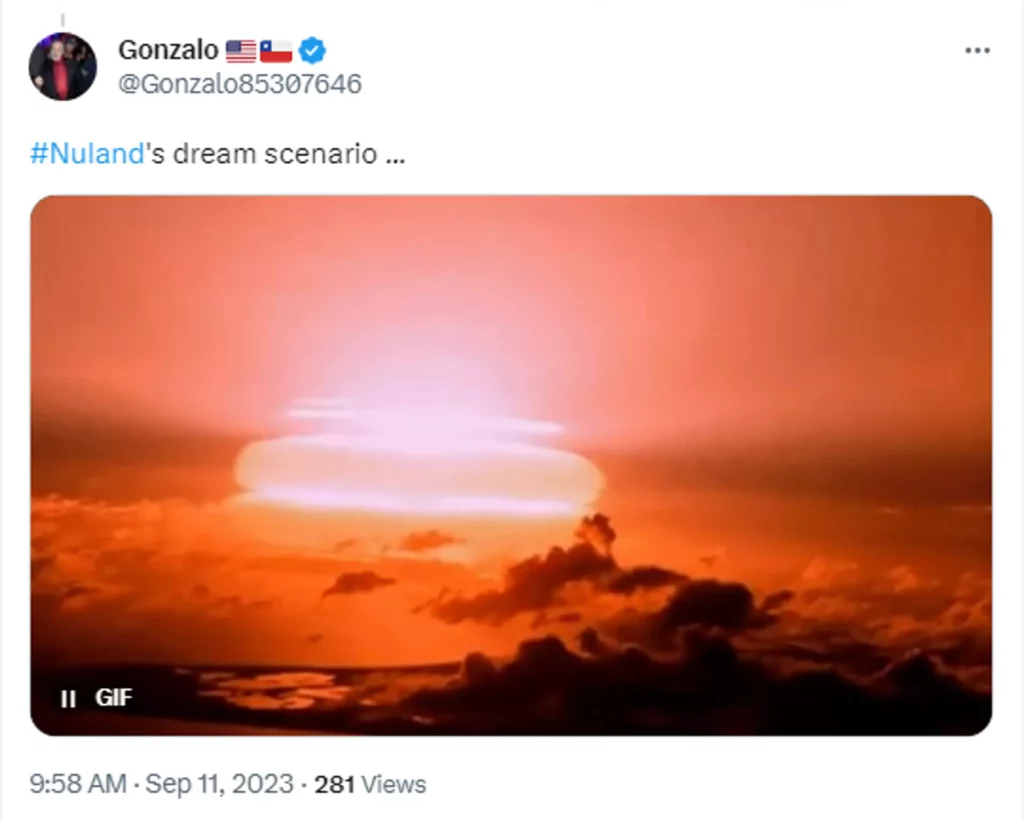 Αντιδρώντας στο απόσπασμα στα μέσα κοινωνικής δικτύωσης, οι χρήστες παρατήρησαν ότι η Βικτόρια Νούλαντ φαίνεται να σχεδιάζει να εξαπολύσει έναν «πυρηνικό πόλεμο» – κάτι που έχει πει επανειλημμένα ο δημόσιος υπάλληλος μαζί με τον Πρόεδρο των ΗΠΑ Τζο Μπάιντεν και ανώτερους αξιωματούχους του Λευκού Οίκου και του Στέιτ Ντιπάρτμεντ.