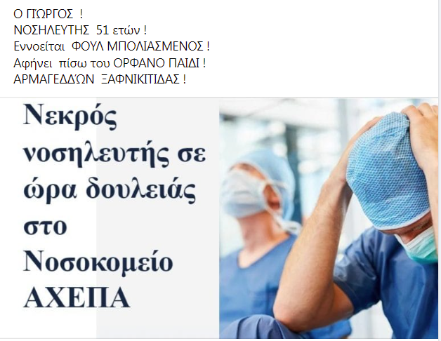 Τον βρήκαν μετά από μερικές ώρες τάβλα, παγωμένο και κρύο εφόσον έσκασε η καρδιά του απο τους θρόμβους είχε προφυλαχθεί με υποχρεωτικές ενέσεις κατά της ασθένειας που ακόμη δεν έχει αποδειχθεί η ύπαρξη της!!!