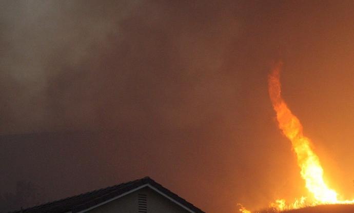 Μπροστά στα έκπληκτικα μάτια των πυροσβεστών εκτυλίχθηκε ένα απίστευτο φαινόμενο: ένας ανεμοστρόβιλος φωτιάς που εκτοξεύτηκε προς τον ουρανό καίγοντας τα πάντα στο πέρασμά του.