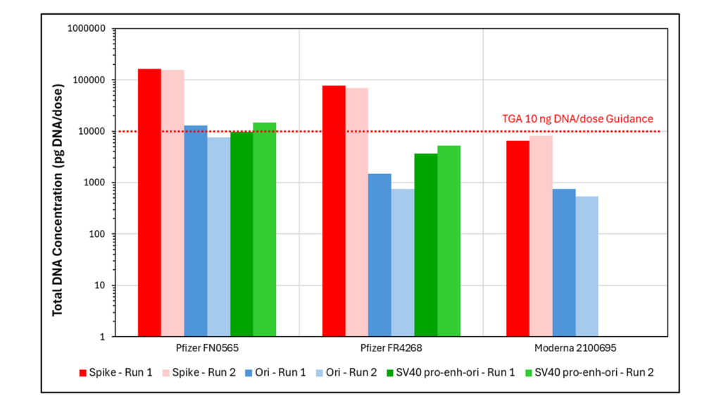 Το TGA αρνείται ότι τα εμβόλια Covid mod-RNA είναι μολυσμένα με συνθετικό DNA σε συγκεντρώσεις που υπερβαίνουν τα 10 ng ανά δόση. Ωστόσο, επειδή βρέθηκαν υψηλές συγκεντρώσεις σε φιαλίδια από άλλες περιοχές, η νομική ομάδα πίσω από την υπόθεση ΓΤΟ ανέθεσε αυτή τη μελέτη για τον προσδιορισμό των υπολειμματικών συγκεντρώσεων συνθετικού DNA σε φιαλίδια της Αυστραλίας.