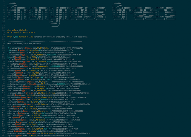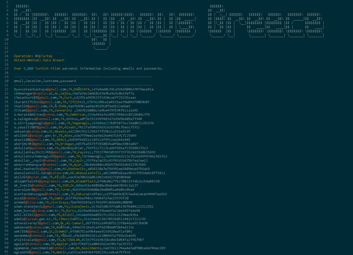 Χρειαζόμασταν κάποιες μέρες για να βρούμε και να παραβιάσουμε τους σέρβερ που αποθηκεύουν προσωπικές πληροφορίες των Τούρκων πιλότων. Τους παραβιάσαμε και κατεβάσαμε τα δεδομένα. Η διαρροή περιλαμβάνει προσωπικές πληροφορίες σχετικά με τους Τούρκους πιλότους, όπως ονόματα χρήστη, τοποθεσίες, διευθύνσεις ηλεκτρονικού ταχυδρομείου (e-mail) και κωδικούς πρόσβασης».