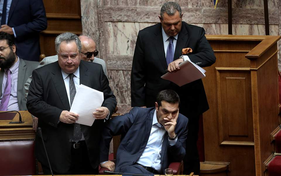 Το τραύμα που αφήνουν τα γεγονότα στη δημοκρατία, αλλά και στην ενότητα του έθνους, είναι πολύ βαθύ, και μόνον ένα δημοψήφισμα θα μπορούσε να λειτουργήσει επουλωτικά. Σύσσωμη η αντιπολίτευση, και ιδίως η Νέα Δημοκρατία, έχει επιλέξει να ακολουθήσει το στενό κομματικό συμφέρον και όχι να αντιμετωπίσει αυτό το βαθύ τραύμα απαιτώντας επί τέλους τη διεξαγωγή του. Γνωρίζει ότι ο εκτροχιασμός της παρούσας διαδικασίας συνεπάγεται άμεση πτώση της κυβέρνησης, εκλογές, που καθιστούν σοβαρό το ενδεχόμενο να κληθεί στη θέση ευθύνης να διαχειριστεί το καυτό, ναρκοθετημένο ζήτημα της Συμφωνίας. Και τότε θα πρέπει να αντιμετωπίσει ένα δίλημμα που αδυνατεί να αντικρίσει, τη σύγκρουση με τον ξένο παράγοντα, τον οποίον μέχρι σήμερα πάσχιζε να πείσει ότι «κάνει καλύτερα την δουλειά από τον Τσίπρα», ή το σύρσιμο σε μια «κωλοτούμπα» που θα θέσει εν αμφιβόλω το ίδιο το μέλλον της.