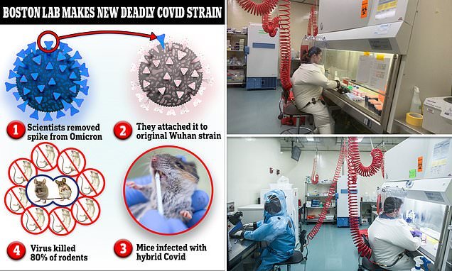 Η DailyMail.com αποκάλυψε ότι η ομάδα είχε φτιάξει έναν υβριδικό ιό – συνδυάζοντας τον Omicron και το αρχικό στέλεχος της Wuhan – που σκότωσε το 80 τοις εκατό των ποντικών σε μια μελέτη.
