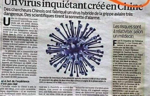Η γαλλική εφημερίδα μεγάλης κυκλοφορίας ”le Parisien” στις 5 Μαίου 2013 δημοσιεύει άρθρο με τίτλο: ”Ένας ανησυχητικός ιός δημιουργήθηκε στην Κίνα”. Mεταδίδεται μέσω της αναπνευστικής οδού και το γράφημα είναι όμοιο με κορωνοιού. Συνεχίζει: