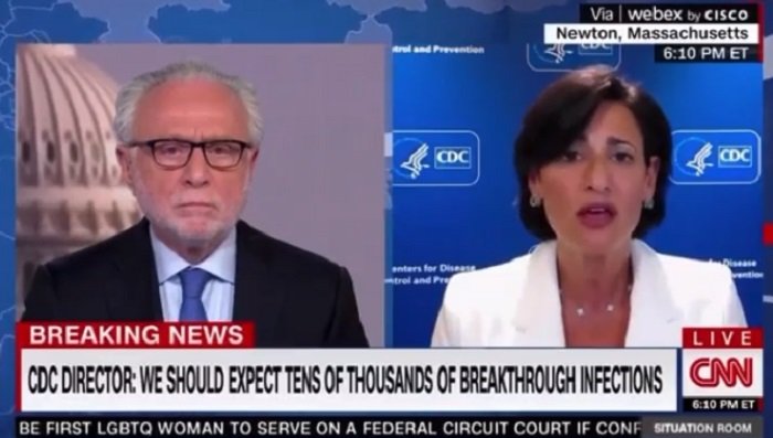 Ο διευθυντής της DC και εκπρόσωπος των Δημοκρατικών Δρ. Rochelle Walensky είπε στον Wolf Blitzer την Παρασκευή ότι το εμβόλιο COVID δεν μπορεί να αποτρέψει τη μετάδοση της νόσου, αναφέρει η The Gateway Pundit.