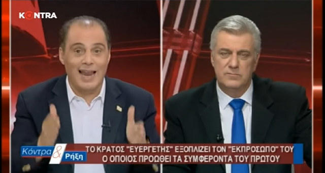 με τον πρόεδρο του ΛΑΟΣ να εμφανίζει διάφορα στοιχεία κ.α. που δείχνουν ότι ο Βελόπουλος που στα καλά καθούμενα φέρεται να έγινε μέγας και τρανός επιχειρηματίας το οποίο το διατυμπανίζει σε κάθε εκπομπή – γιατί άραγε τέτοια ανασφάλεια; – τον ικέτευε για λίγο τηλεοπτικό χρόνο γιατί ήταν ζορισμένος οικονομικά…