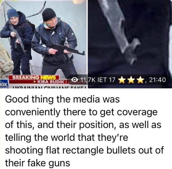 Όποιος παρακολουθει τις εικόνες από την πραγματική ζωή και/ή μίλησε με ανθρώπους στην Ουκρανία γνωρίζει ότι δεν συμβαίνουν πολλά από αυτά που γράφουν τα ΜΜΕ. Ωστόσο, υπάρχουν πολλές γελοιότητες και πράκτορες παραπληροφόρησης που διαδίδουν στημένα πλάνα καθώς και πλαστά βίντεο στα μέσα κοινωνικής δικτύωσης για τις ευκολόπιστες μάζες αλλά άραγε με ποιον σκοπό;;;
