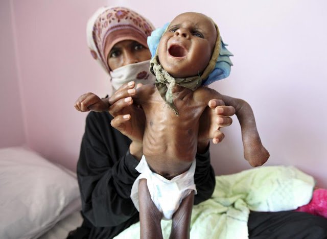 Πεινασμένο παιδάκι στην Υεμένη, ένα από τα εκατοντάδες χιλιάδες που πεθαίνουν λόγω του πολέμου με τον σύμμαχο της Δύσης Σ. Αραβία…