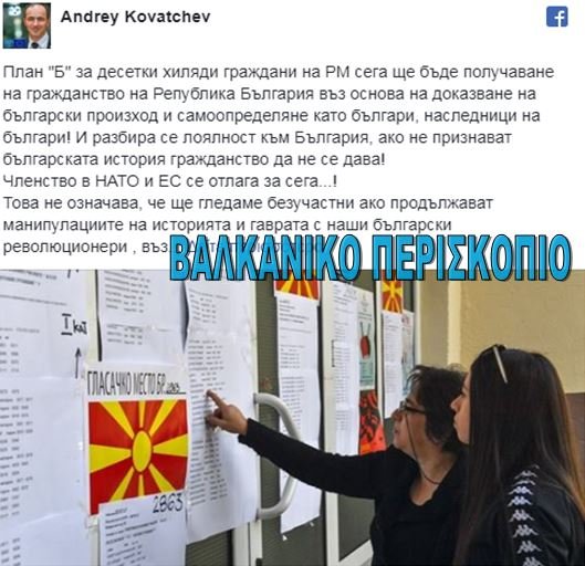 «Το ‘σχέδιο Β’ για δεκάδες χιλιάδες πολίτες της ‘Δημοκρατίας της Μακεδονίας’ είναι πλέον η υπηκοότητα της Δημοκρατίας της Βουλγαρίας, με βάση την απόδειξη της βουλγαρικής καταγωγής και του αυτοπροσδιορισμού τους ως Βούλγαροι, απόγονοι Βουλγάρων!