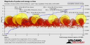 Από την έναρξη του σεισμικού σμήνους στο ηφαιστειακό σύστημα της Σαντορίνης, πολλοί έχουν παρατηρήσει ένα περίεργο μοτίβο σεισμών μεγέθους 5,0 Ρίχτερ. Εμφανίζονταν με συχνότητα ακριβώς μία φορά την ημέρα, στο ίδιο βάθος περίπου 10 χιλιομέτρων. Τέτοια θαύματα δεν συμβαίνουν στη φύση, επομένως το φαινόμενο έχει προκαλέσει υποψίες για χειραγώγηση δεδομένων. Αυτό είναι το σημερινό στιγμιότυπο … [Read more…]