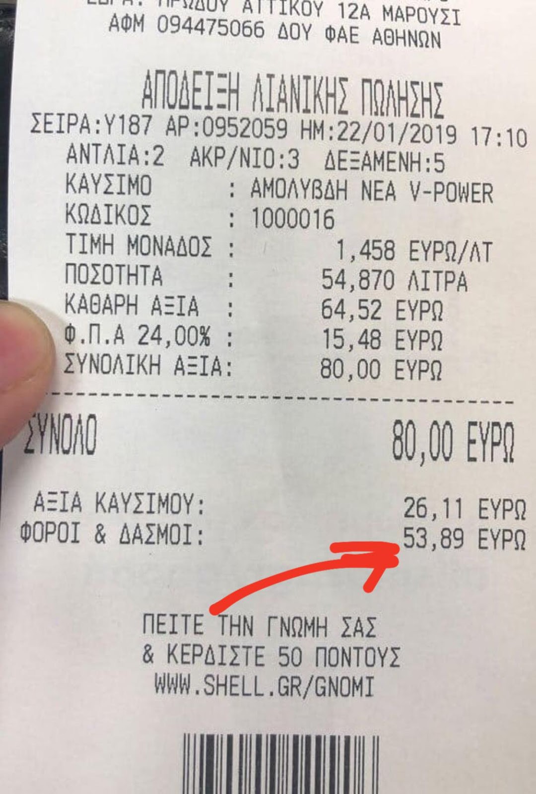Δεν συμβαίνει πουθενά αλλού “κοιμησμένε βασιλιά”….Στα 80 ευρώ καυσίμων τα 54 είναι δασμοί!