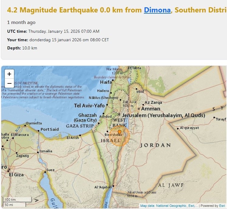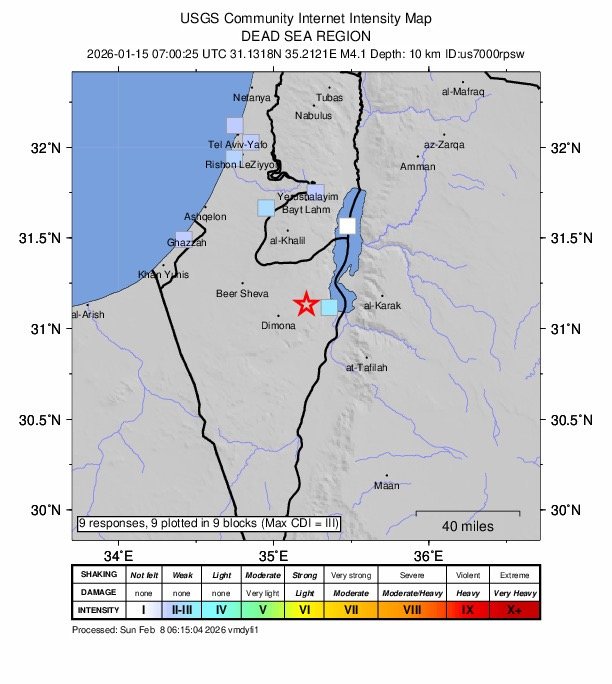Σύμφωνα με την Αμερικανική Γεωλογική Υπηρεσία, στις 15 Ιανουαρίου 2026, περίπου 2.000 σεισμοί μεγέθους έως και 4,0 Ρίχτερ σημειώθηκαν σε όλο τον πλανήτη. Φυσικά, σε αυτή την τεράστια μάζα, κανείς δεν πρόσεξε αμέσως τον μικρό σεισμό στο μικροσκοπικό Ισραήλ:
