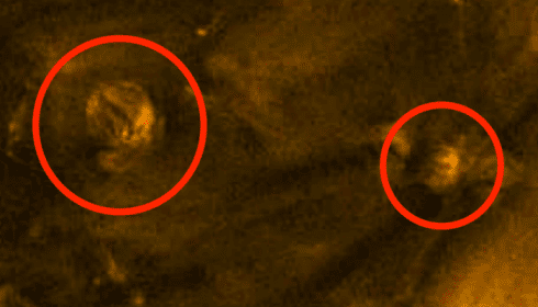Όπως αναφέρει ο Scott C. Waring , ενώ ξεφύλλιζε εικόνες της NASA από τον Μάρτιο, ανακάλυψε μια εκπληκτική εικόνα: δύο φαινομενικά σφαιρικά αντικείμενα ακριβώς πάνω στην επιφάνεια του Ήλιου. Η αρχική εικόνα της NASA βρίσκεται στον σύνδεσμο.