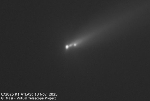 Αυτά ήταν τα πρώτα σημάδια παράξενων γεγονότων. Και στις 12 Νοεμβρίου, ο Τζανλούκα Μάσι του έργου Εικονικού Τηλεσκοπίου στην Ιταλία εξέτασε ξανά τον κομήτη C/2025 K1 (ATLAS) και ανακάλυψε ότι ο κομήτης είχε χωριστεί σε τρία κομμάτια: