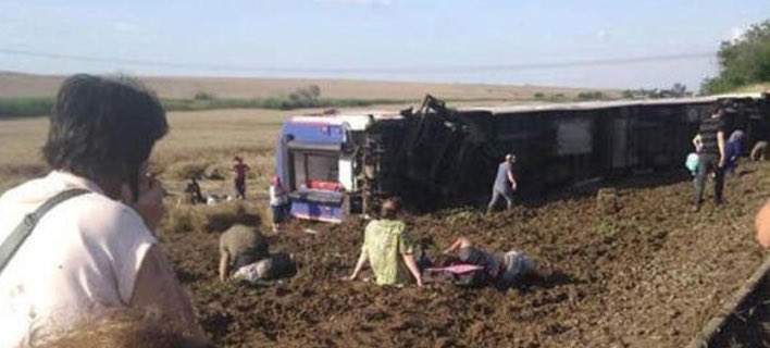 Τρένο εκτροχιάστηκε την Κυριακή στη βορειοδυτική Τουρκία με αποτέλεσμα 20 άνθρωποι να χάσουν τη ζωή και 73 να τραυματιστούν, σύμφωνα με την ανταποκρίτρια του ΑΝΤ1 στην Τουρκία. Πάντως, η Hurriyet και το CNN Turk μεταδίδουν ότι οι νεκροί είναι δέκα.