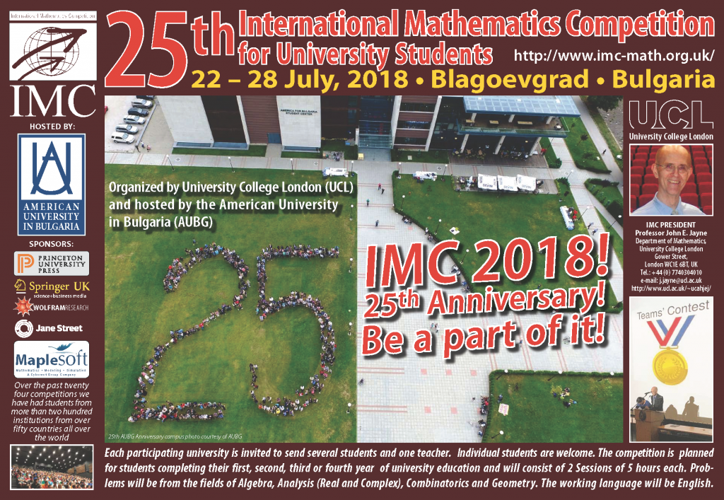 Το ‘International Mathematics Competition’, είναι ο μεγαλύτερος παγκόσμιος μαθηματικός διαγωνισμός για φοιτητές και οργανώνεται από το University College London.