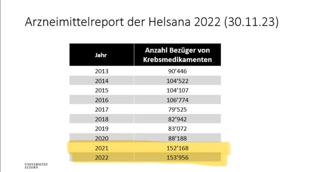 Ο οικονομολόγος υγείας Konstantin Beck από το Πανεπιστήμιο της Λουκέρνης κρούει τον κώδωνα του κινδύνου. Μια δημοσίευση με ημερομηνία 30 Νοεμβρίου δείχνει πόσοι άνθρωποι έχουν λάβει αντικαρκινικά φάρμακα τα τελευταία χρόνια.