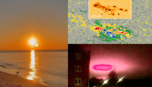 Η ηλιακή κηλίδα 4246 έχει αναπτυχθεί ραγδαία, καθιστώντας την μία από τις μεγαλύτερες κηλίδες του Ηλιακού Κύκλου 25. Επιπλέον, έχει ένα ασυνήθιστο μαγνητικό πεδίο μικτής πολικότητας, όπως φαίνεται σε αυτόν τον μαγνητικό χάρτη της 14ης Οκτωβρίου, που ελήφθη από το Παρατηρητήριο Ηλιακής Δυναμικής της NASA: