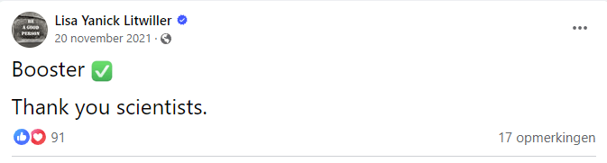 Η δημοσιογράφος εμβολιάστηκε με ενθουσιασμό και ενισχύθηκε με τις αγίες Pfizer. Ευχαριστώ, επιστήμονες», έγραψε στις 20 Νοεμβρίου 2021.