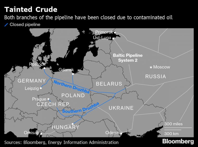 Το πετρέλαιο που διακινείται μέσω του λιμένα της Βαλτικής Ust Luga και του αγωγού “Druzhba” στη Λευκορωσία, την Πολωνία, τη Γερμανία, την Ουγγαρία και την Τσεχία έχει μολυνθεί με υψηλά επίπεδα οργανικού χλωρίου από τις 19 Απριλίου.