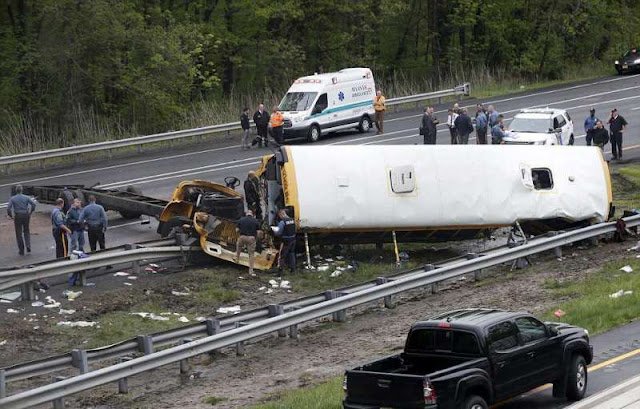 Η σύγκρουση των δύο οχημάτων ήταν τόσο σφοδρή που, όπως φαίνεται και στη φωτογραφία, το σχολικό κυριολεκτικά κόπηκε στα δύο και το πάνω μέρος του καρφώθηκε στις προστατευτικές μπάρες.