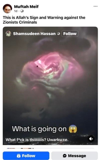 Οι ειδικοί αναρωτιούνται τι ήταν. Οι αδαείς το είδαν αυτό ως σημάδι από τον Αλλάχ, ο οποίος επρόκειτο να αρχίσει να αντιμετωπίζει το μισητό σιωνιστικό καθεστώς: