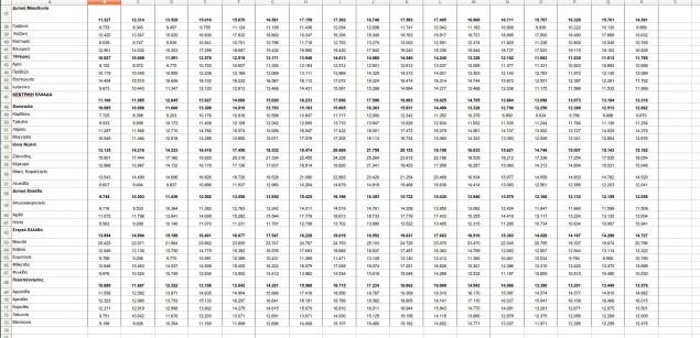η Ανατολική Μακεδονία- Θράκη με 11.432 ευρώ (+1,3%).