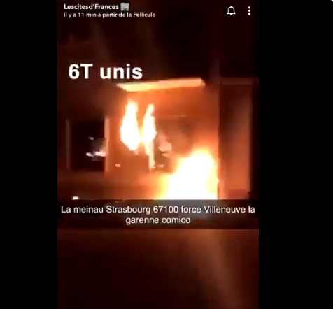 Η κορύφωση των επεισοδίων σημειώθηκε στο Στρασβούργο όπου οι εξεγερμένοι έκαψαν με αυτοσχέδιες ρουκέτες πυροτεχνήματα και μολότοφ ένα αστυνομικό τμήμα στο Meinau. Τα επεισόδια σε 16 πόλεις της Γαλλία άρχισαν το Σάββατο και συνεχίστηκαν ως και πρωί Δευτέρας αφότου ένας 30χρονος τραυματίστηκε σοβαρά ενώ οδηγούσε μηχανή και συγκρούστηκε με περιπολικό στην πόλη Villeneuve-la-Garenne.