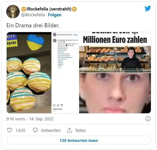 Μετά την έναρξη του πολέμου, το αρτοποιείο προκάλεσε σάλο με τα μπλε και κίτρινα γυαλισμένα ουκρανικά γλυκά του. Ως μέρος μιας μεγάλης εκστρατείας αλληλεγγύης, τα έσοδα από όλα τα πωλούμενα “Berliner” δωρήθηκαν στην Ουκρανία. Αυτή ακριβώς η προθυμία για βοήθεια είναι που σκοτώνει τώρα μόνο τους αρτοποιούς Künnes: