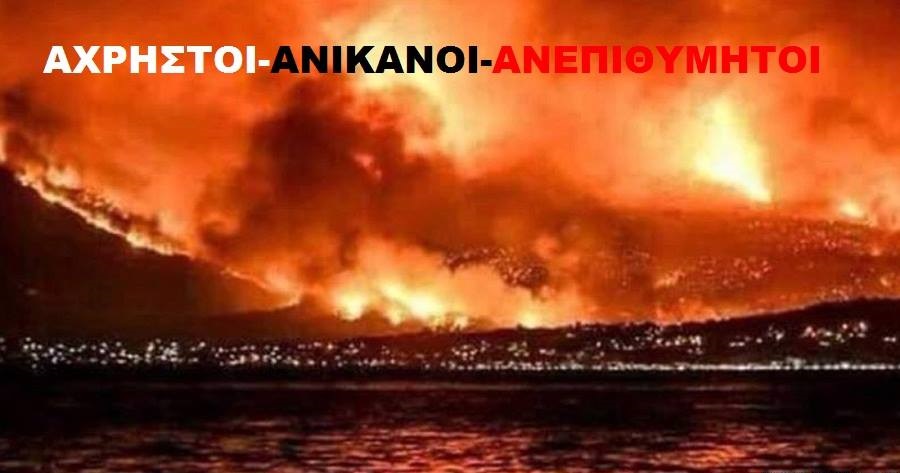 Η Ελλάδα ζει αυτές τις μέρες την μεγαλύτερη εθνική συμφορά των τελευταίων χρόνων, μια εθνική συμφορά που έχει ως κυρίους υπευθύνους τους κυβερνώντες τα τελευταία 3 ½ χρόνια, Τσίπρα και Καμμένο – χωρίς βεβαίως να παραγνωρίζουμε και τις ευθύνες των προηγουμένων.