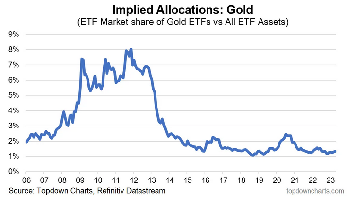 Στα οικονομικά μέσα και κανάλια που ελέγχονται τέλεια, η προσοχή στον χρυσό είναι περιορισμένη και το συναίσθημα δεν είναι τόσο ευφορικό, όπως και θα δείτε στο γράφημα.