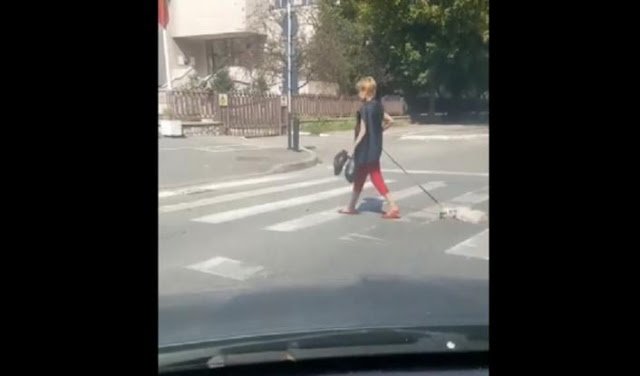 Μια γυναίκα στη Ρουμανία έβγαλε βόλτα το νεκρό σκύλο της. Ένας αυτοκινητιστής που καταγράφει τη σκηνή της λέει: «Νομίζω ότι είναι νεκρός».