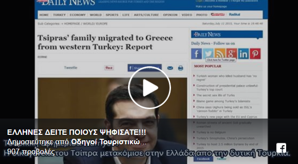 Ο Αλέξης Τσίπρας του ΣΥΡΙΖΑ «είναι εγγονός μίας οικογένειας που είχε μετακομίσει στην Ελλάδα από τη βορειοδυτική επαρχία της Τουρκίας Κιρκλαρέλι», σημειώνει η Hürriet, επικαλούμενη δημοσίευμα της 29 Ιανουαρίου 2015 τοπικής εφημερίδας daily Hudut ,που εκδίδεται στην βορειοδυτική επαρχία της Αδριανούπολης (Edirne) .