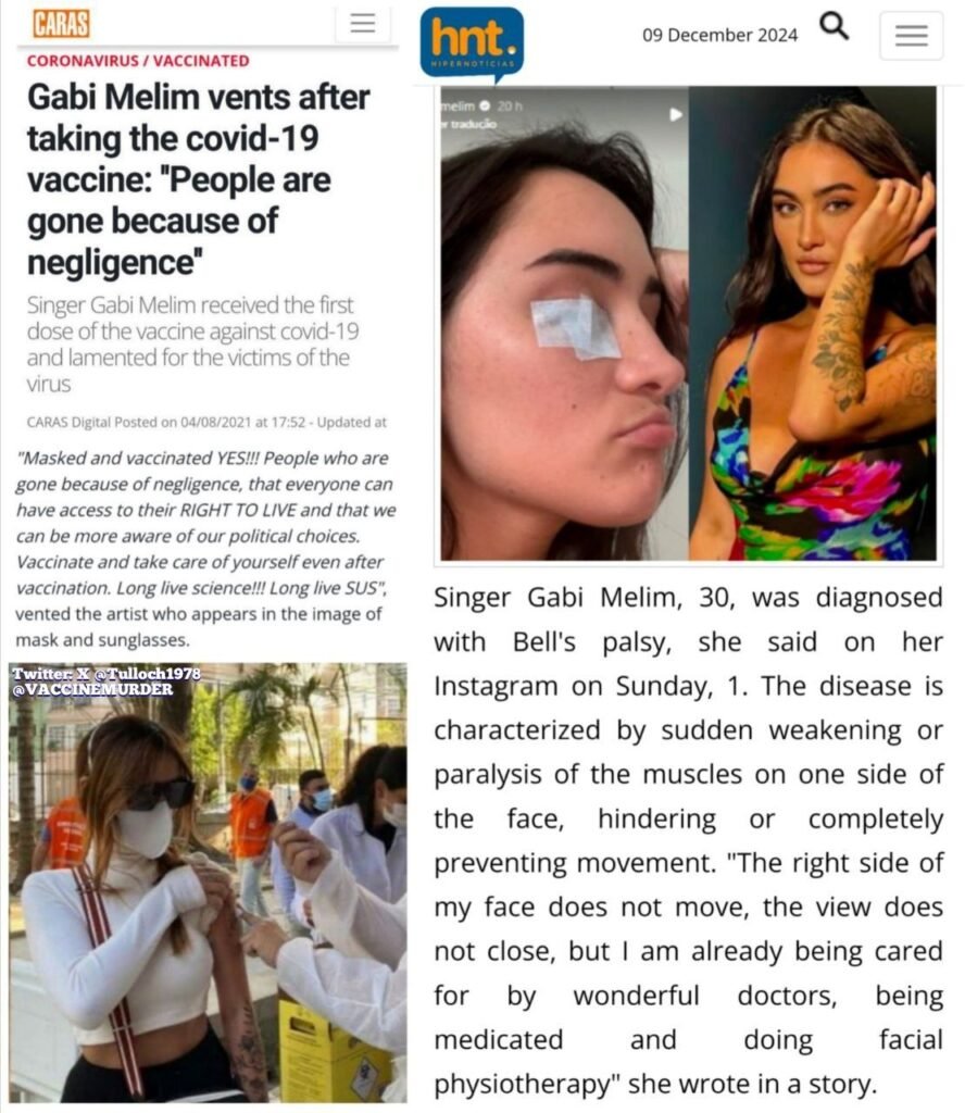 Η 30χρονη Βραζιλιάνα τραγουδίστρια Gabi Melim χτύπησε τις Pfizer και παράλυσε το πρόσωπο της – διαγνώστηκε με παράλυση Bell
