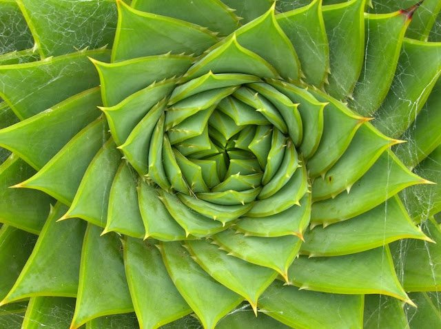 Αυτή η έλικα Φιμπονάτσι που η αναλογία της είναι 1.618034 μπορεί να βρεθεί σε ένα ηλιοτρόπιο που τα ανθύλλια του σχηματίζουν τέλειες έλικες του 21, 34 και 55 της ακολουθίας Φιμπονάτσι. Αυτό επίσης ισχύει και για τον αριθμό των πετάλων ενός λουλουδιού, το κέλυφος του σαλιγκαριού, για τις ρίζες και τα κλαδιά των δέντρων και για πολλά άλλα.