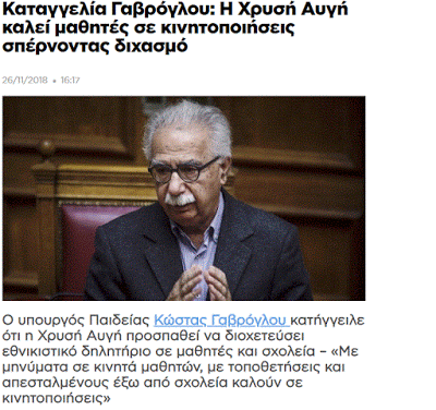 Έχουν κάνει όλη την προετοιμασία για το έγκλημα και τώρα τους ενδιαφέρει να μην αντιδράσει ο ελληνικός λαός …Τους ενδιαφέρει να τον παρουσιάσουν σαν “φασίστα”, ώστε να μην μπορεί να βρει συμπαράσταση σε αυτήν του την αντίδραση …Τους ενδιαφέρει να τον κάνουν αντιπαθή σε όλα τα μήκη και τα πλάτη του Πλανήτη. Μιλάμε καθαρά για συνομωσία εις βάρος ενός ολόκληρου λαού. Μιλάμε για μεθοδεύσεις, οι οποίες εύκολα μπορούν να καταγγελθούν, για να πάνε κάποιοι Ευρωπαίοι “δημοκράτες” στα δικαστήρια και από εκεί στη φυλακή.