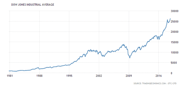 Λογικά λοιπόν αναφέρεται πως η ιστορία επαναλαμβάνεται, όπως συμπεραίνεται από τα παραπάνω – σε συνδυασμό με τις νομισματικές κρίσεις που έχουν ξεσπάσει σήμερα στην Τουρκία, στη Βραζιλία, στην Αργεντινή, στη Ν. Αφρική, στην Ινδονησία, στην Ινδία κοκ.Η εξέλιξη του αμερικανικού χρηματιστηρίου πάντως τότε ήταν θετική (γράφημα) – αν και τα επίπεδα του σήμερα είναι υπερβολικά υψηλά.