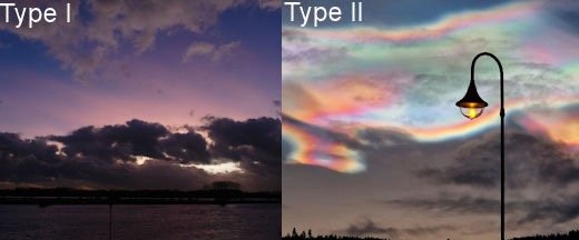 Κανονικά η στρατόσφαιρα δεν περιέχει καθόλου νέφη. Σε αυτές τις χαμηλές θερμοκρασίες, άτομα σε μεγάλη απόσταση μπορούν να κολλήσουν μεταξύ τους σχηματίζοντας ενώσεις όπως νερό (H2O), νιτρικό οξύ (HNO3) και θειικό οξύ (H2SO4). Αυτά μπορούν να φανούν ως μια λαμπερή αδιαφανής ομίχλη στο αρκτικό λυκόφως.