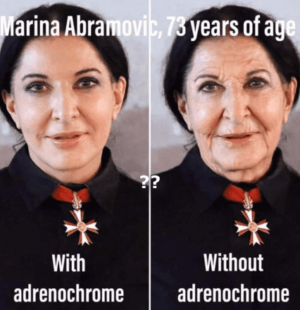 Το Adrenochrome είναι το πιο αγνό προϊόν στην αγορά, το οποίο συλλέγεται υπό αυστηρά ελεγχόμενες συνθήκες από τη διεθνή αλυσίδα εφοδιασμού παιδικών δωρητών.
