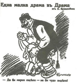 (ΥΓ): Προπαγανδιστική αφίσα στον βουλγαρικό Τύπο της εποχής για την σφαγή του Δοξάτου. Βούλγαρος κομιτατζής «τιμωρεί» έναν Έλληνα τσολιά: «Αν καθόσουν ήσυχος δεν θα τις έτρωγες» αναγράφεται στη λεζάντα.