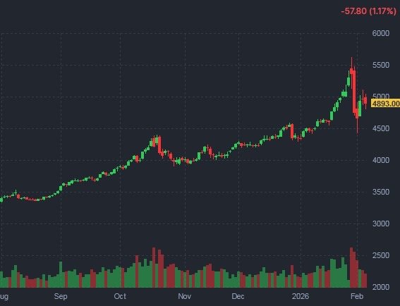 Ο χρυσός βρίσκεται σε παρόμοια κατάσταση: από το υψηλό των 5.500+ ανά ουγγιά, έχει μειωθεί σε σχεδόν 4.500.