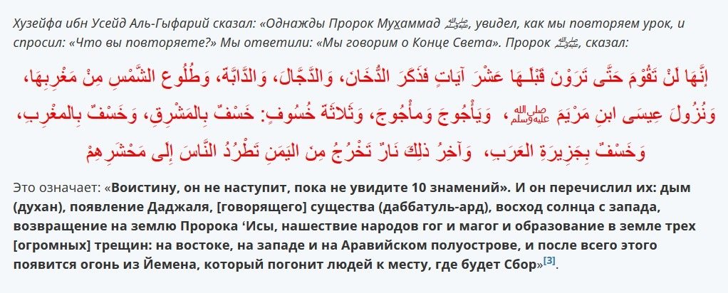 Έτσι, οι Μουσουλμάνοι εσχατολόγοι λένε ότι ένα από τα σημάδια του Τέλους του Κόσμου θα είναι η ανατολή του ηλίου στη Δύση.