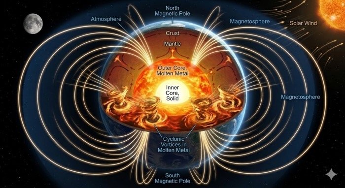 Επιπλέον, η Τεχνητή Νοημοσύνη σίγουρα σχεδίασε μια υπέροχη εικόνα μεταλλικών δινών στον πυρήνα και τον μανδύα, αλλά κανείς δεν έχει δει ποτέ αντικειμενικά αυτές τις δίνες. Αυτή είναι μια γεωλογική θεωρία και τίποτα περισσότερο.