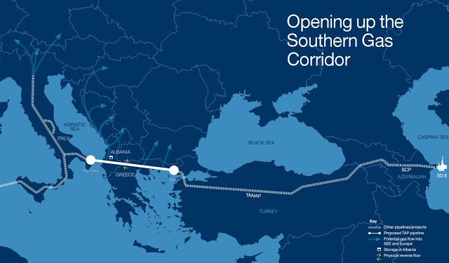 Η Ιταλία αποτελεί για την Γερμανία το προτελευταίο στάδιο του αγωγού ΤΑΡ , του οποίου η ολοκλήρωση θα σημάνει την έναρξη της υλοποίησης του περίφημου Νότιου Ενεργειακού Διαδρόμου( ΝΕΔ)