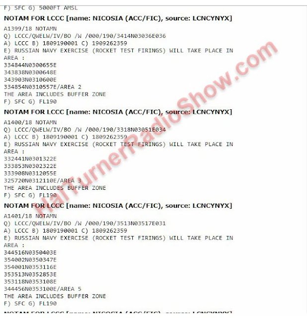 Η Ρωσία έχει εκδώσει ανακοίνωση προς τους αεροπορικούς και ναυτικούς (NOTAM) για τον εναέριο χώρο γύρω από το Ισραήλ να είναι ΚΛΕΙΣΤΟΣ κάτω από 19.000 πόδια. . . για τη ρωσική ναυτική πυραύλλια «Άσκηση».